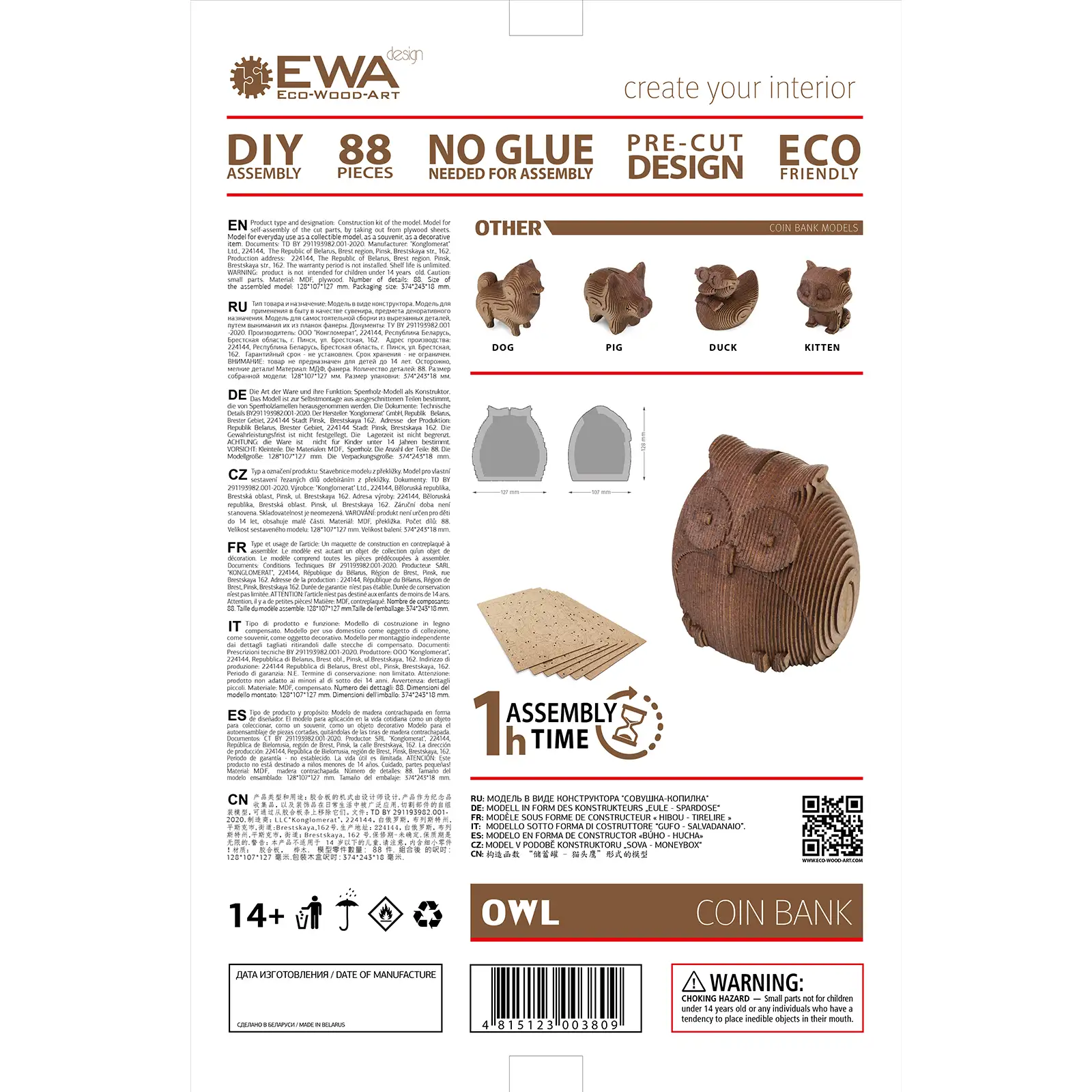 Деревянный 3D пазл копилка «Сова» из 88 деталей