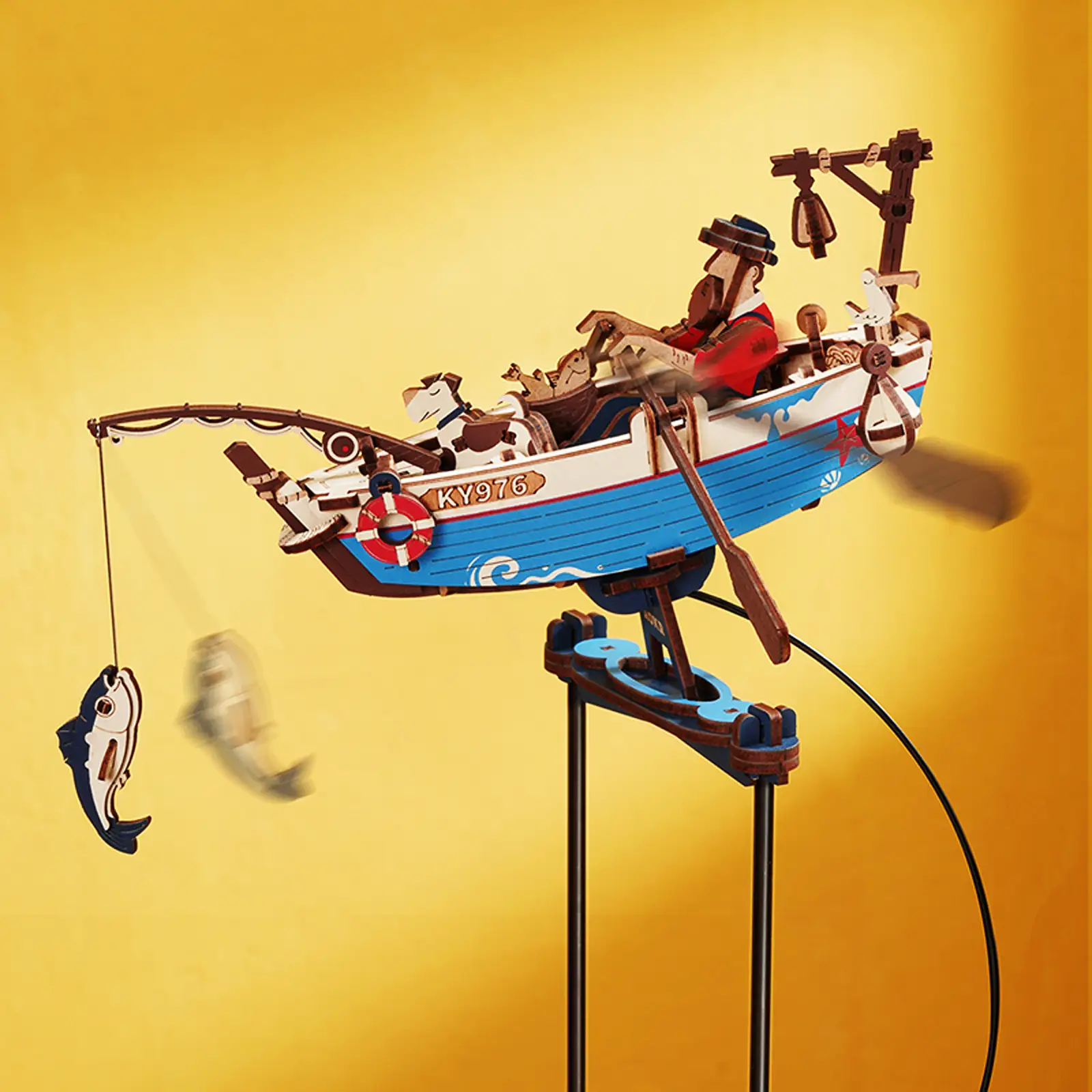 Мы приглашаем Вас в морское путешествие, полное рыболовных приключений, с этой забавной версией маятника. «Рыбак» — это динамичная деревянная 3D-головоломка из серии гравитационных качелей, которая перенесёт вас в бурлящий мир открытого моря. С огромным уловом, висящим на леске, бородатый рыбак ритмично гребёт веслами, чтобы не упасть. Рядом с ним стоит его верный бигль, а ведро уже полное рыбы, и он полон решимости доставить сегодняшний ужин обратно на берег.