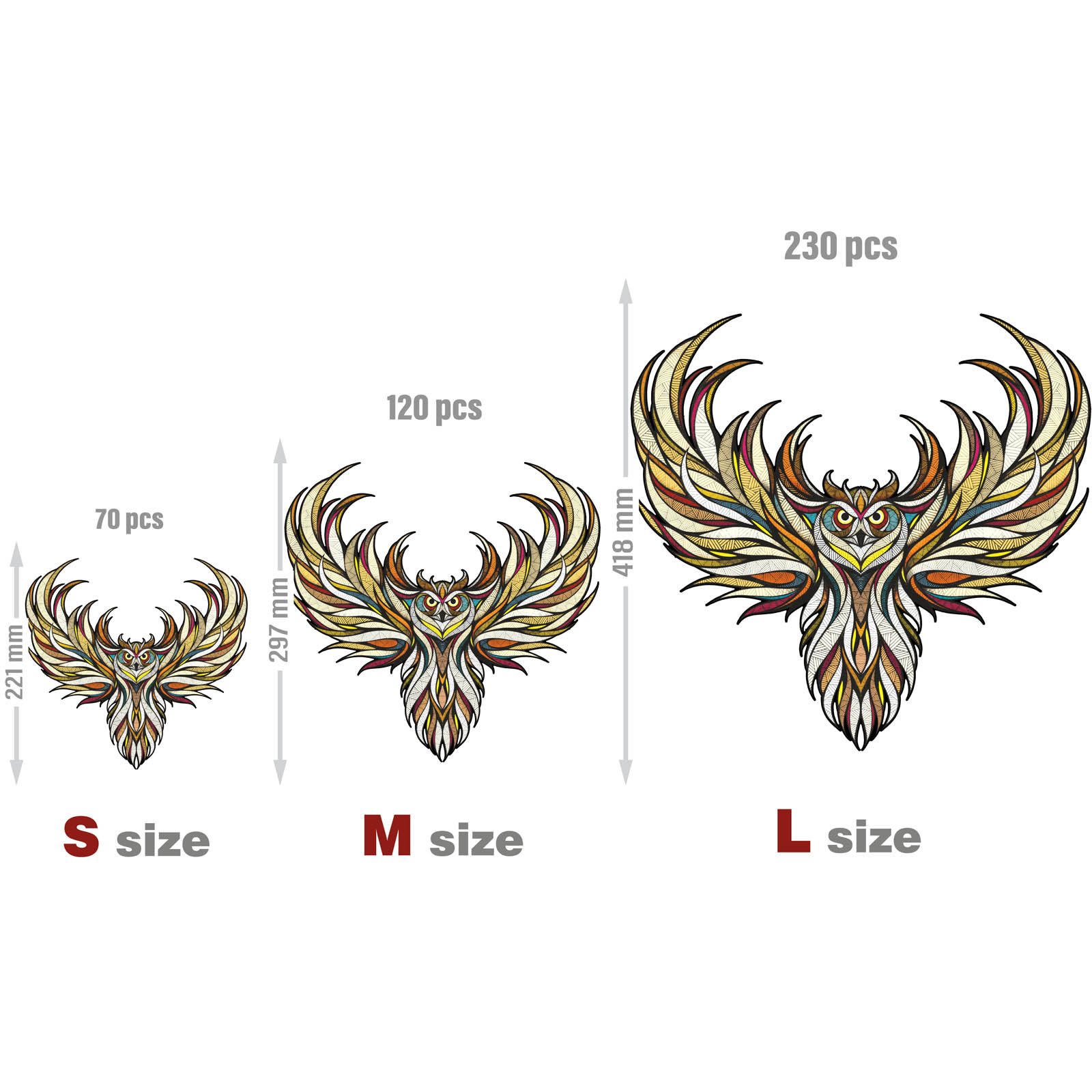 «Сова» деревянный пазл в трех размерах